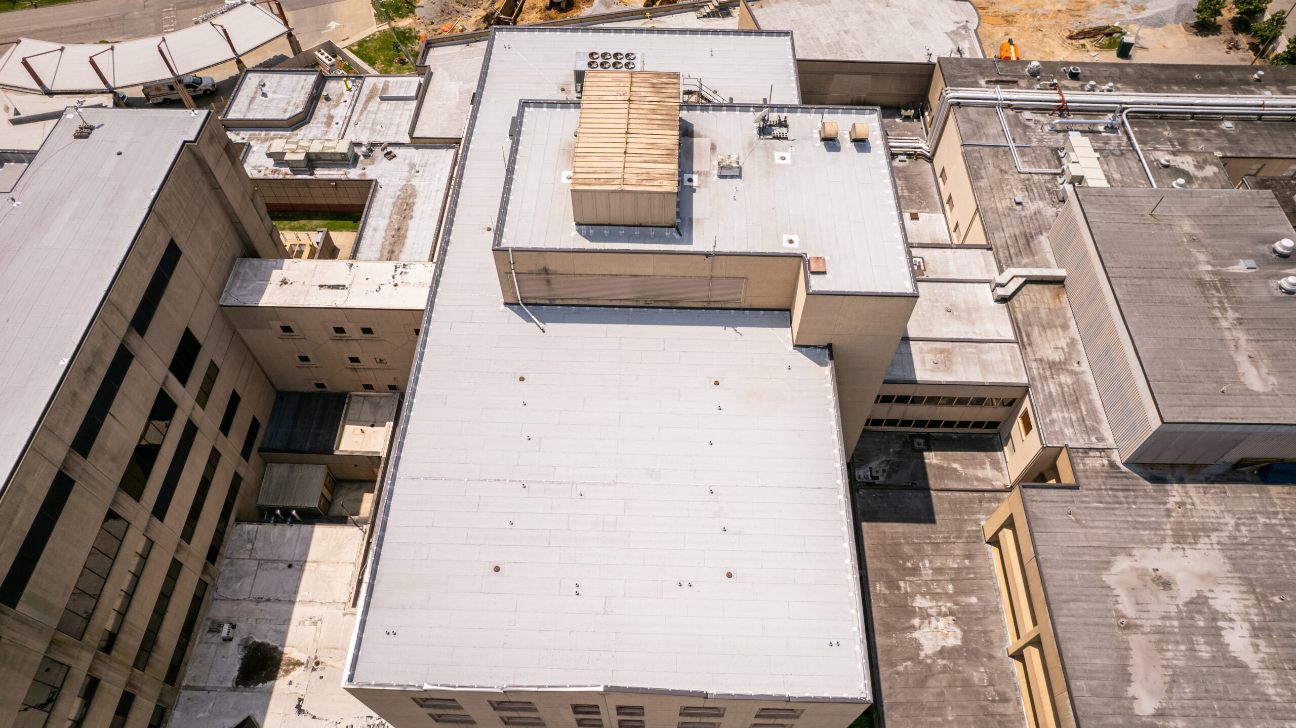 During the renovation, they discovered that the building’s air intakes were on the top, which meant there was a possibility that the odor of the sealing material might be drawn into the hospital area. To accommodate the unique requirements of the hospital environment, they took measures to create a secure and odorless roofing installation by installing carbon filters on the building’s air intakes.