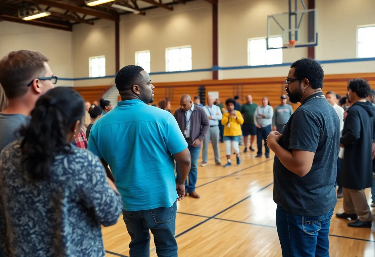Community members at a disaster recovery center in Warren County discussing assistance resources