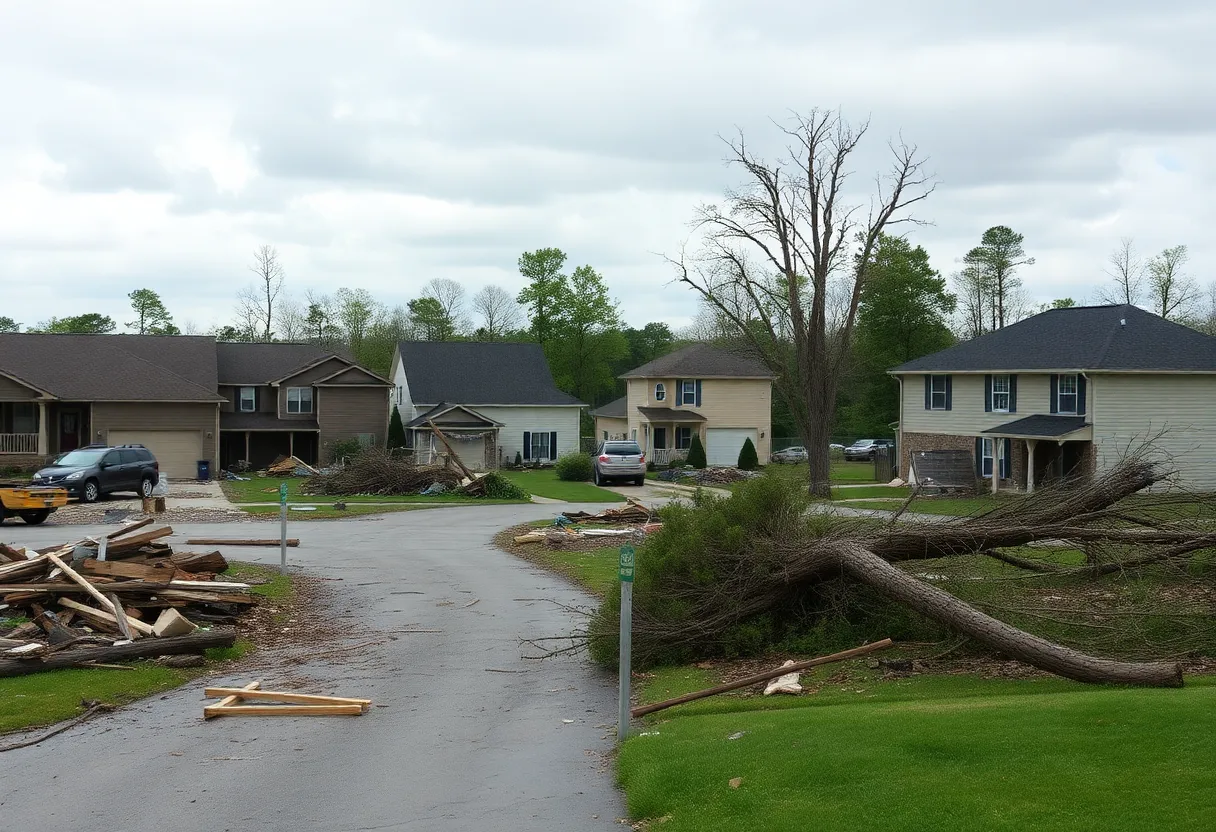 Damage from a tornado in Kentucky, debris scattered across homes and streets.