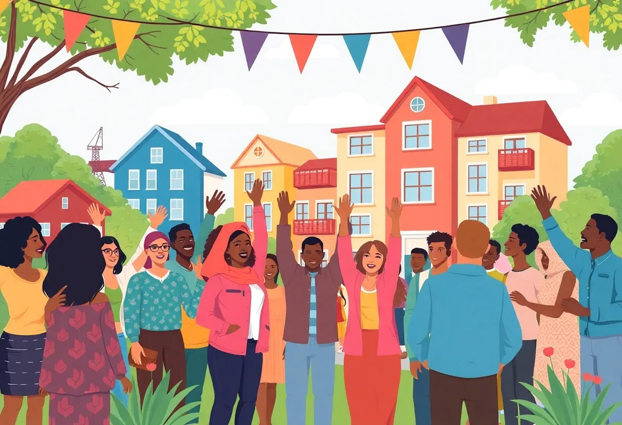 Community members celebrating the revitalization of affordable housing in Lexington.