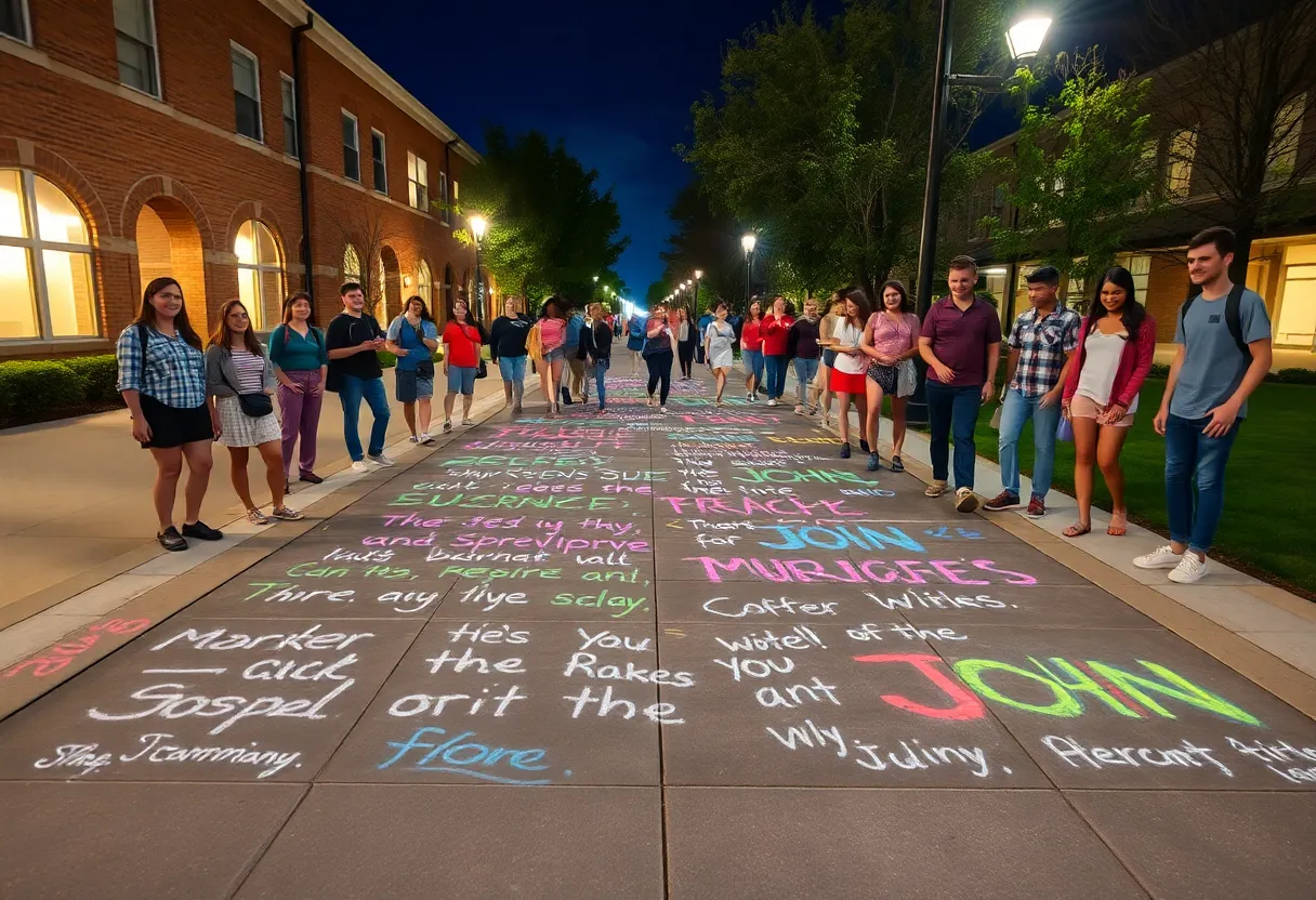 On March 11, students at Western Kentucky University participated in a remarkable event that brought faith to life. A collaborative effort by three campus ministries, they used colorful chalk to write the entire book of John on sidewalks, transforming the campus with vibrant scripture and artwork. This artistic initiative not only brightened the campus atmosphere but also sparked spiritual conversations among students, providing hope and inspiration during late-night study sessions.